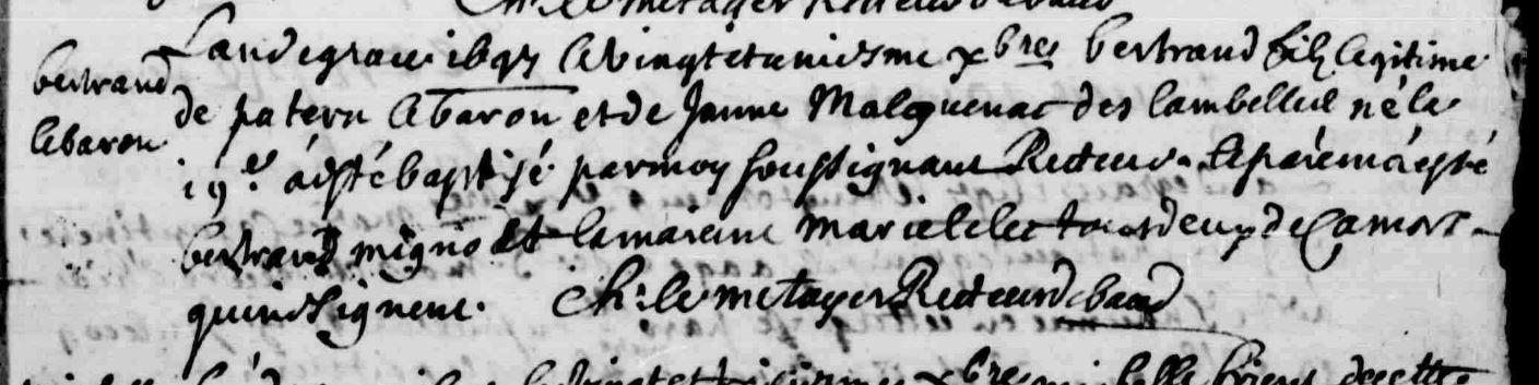 | Baptême BARON (LE) Bertrand - 1697 - Baud |