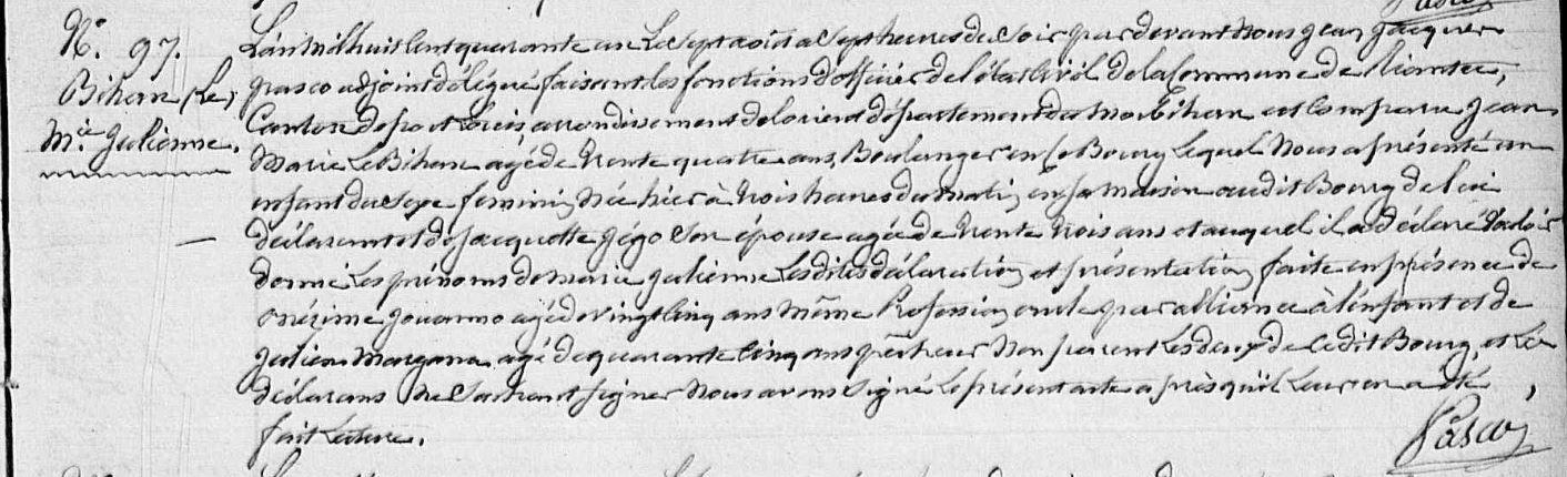 | 1. BIHAN (LE) Jan Naissance : Date : 27/01/1717 Lieu : Kervignac (56) |