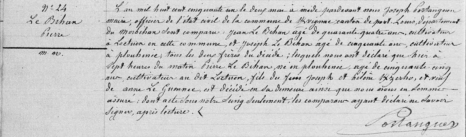 | Décès BIHAN (LE) Pierre - 1851 - Kervignac |
