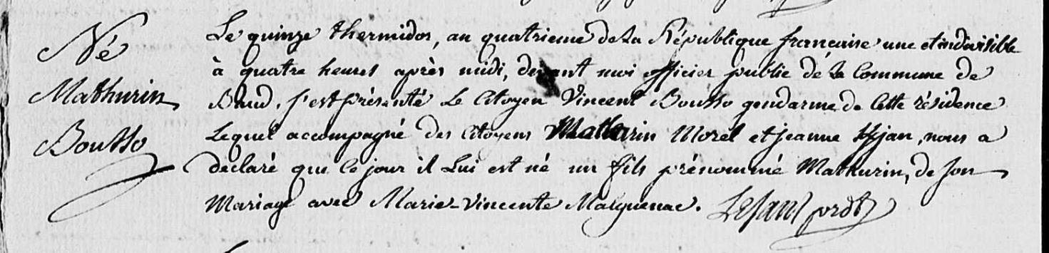 | 5. BOUSSO Mathurin Naissance : Date : 03/08/1796 Lieu : Baud (56) |