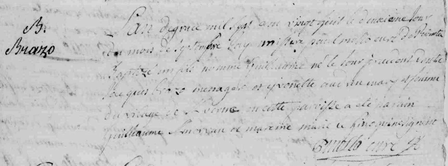 | Baptême BRAZO Guillaume Jean - 1734 - Riantec |