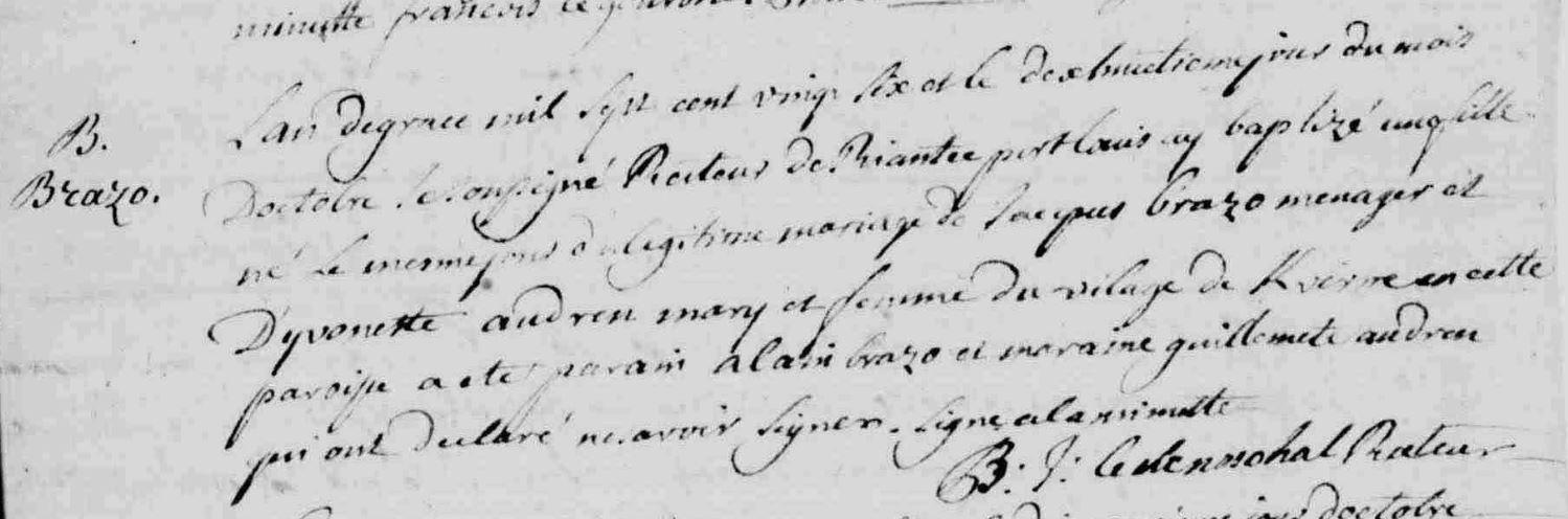 | 6. BRAZO Luc Naissance : Date : 18/10/1724 Lieu : Riantec (56), Kerverne |