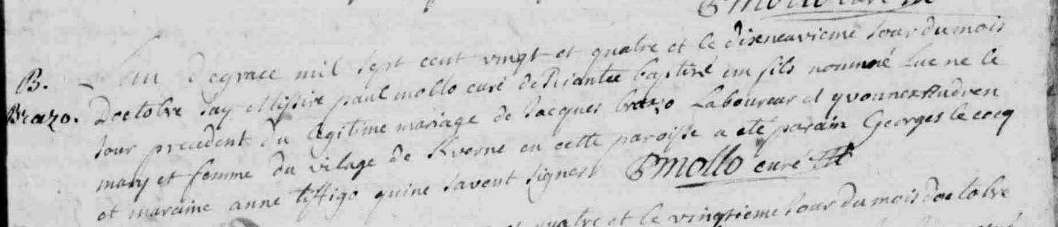 | Baptême BRAZO Luc - 1724 - Riantec |