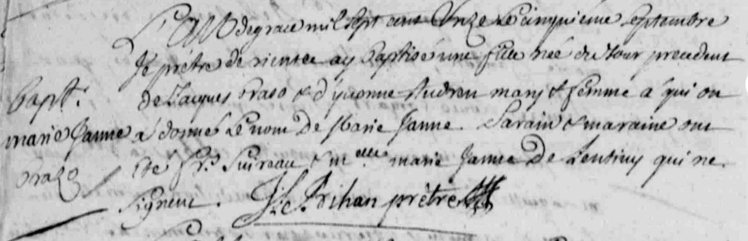 | Baptême BRAZO Marie Jeanne - 1711 - Riantec |