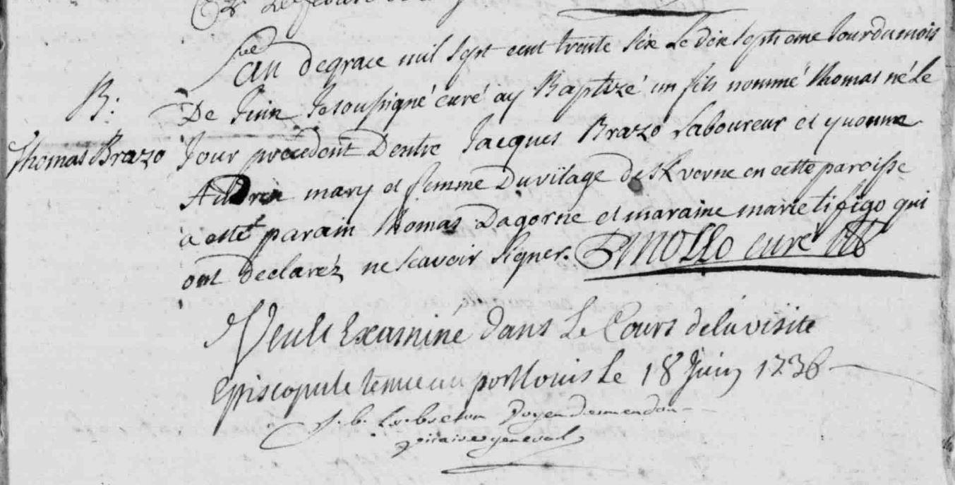 | Baptême BRAZO Thomas - 1736 - Riantec |