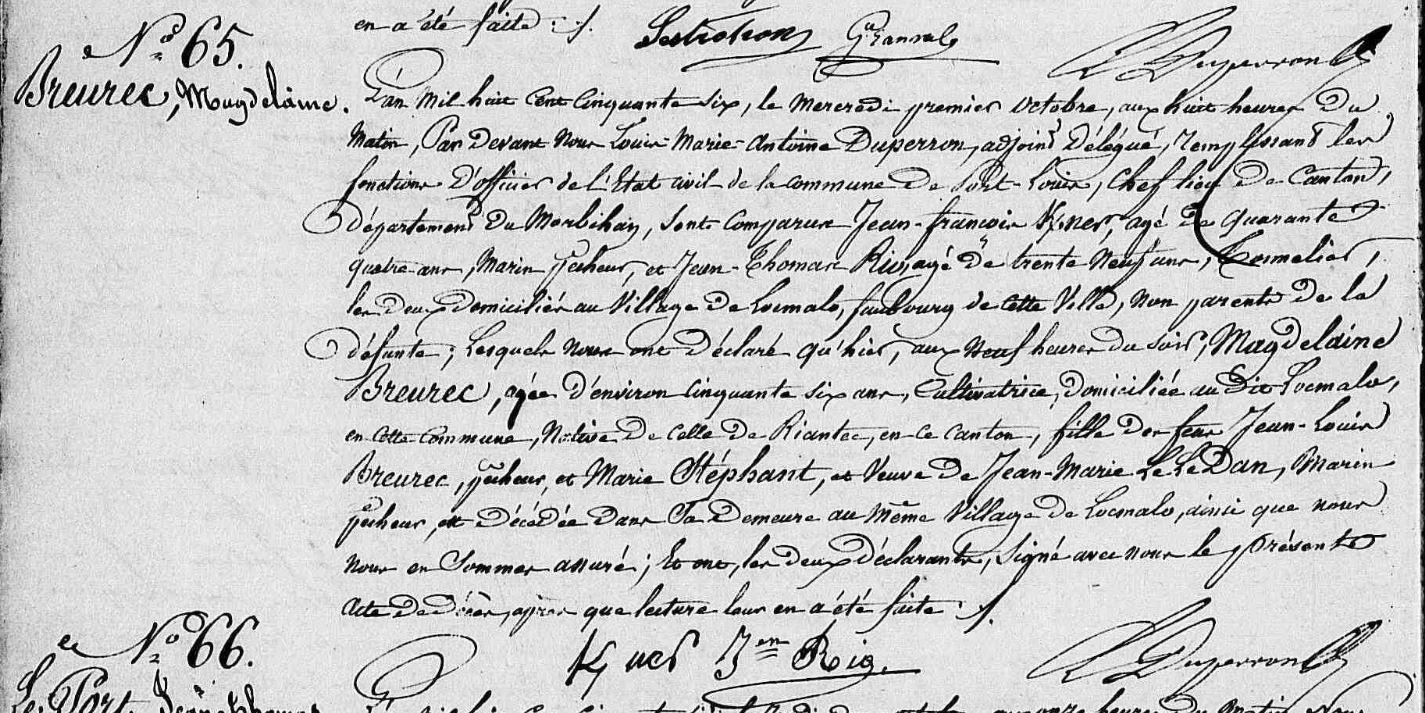 | Décès BREUREC Magdeleine - 1856 - Port-Louis |