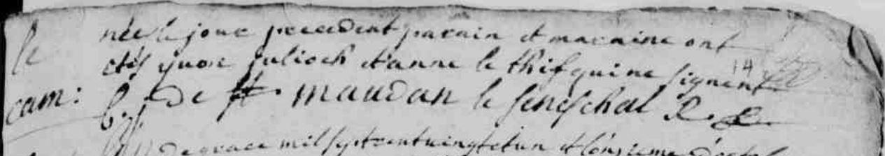 | Il est né ca ../../1717 à Erdeven (56). + 1744/1763 , - - 0:00 - NO à environ 36 ans. Signature : Non. |