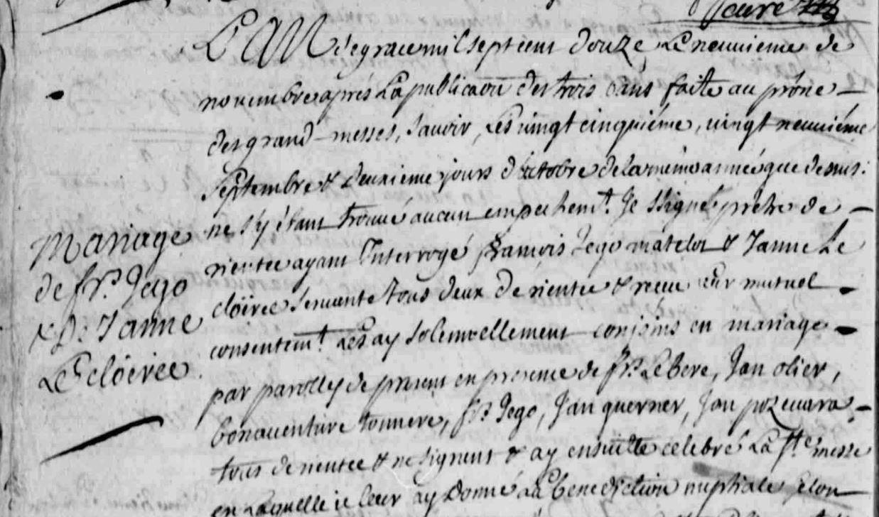 | Mariage JEGO François CLOEREC (LE) Janne - 1712 - Riantec - 1 |