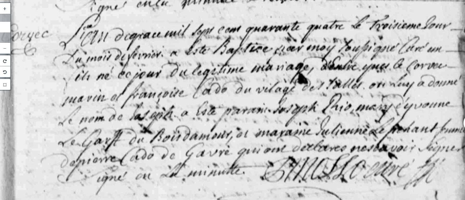 | - CORVEC (LE) Pierre, Sosa 3956 (Naissance : 1630) - GUZEL Jacquette, Sosa 3957 (Naissance : 1630) |