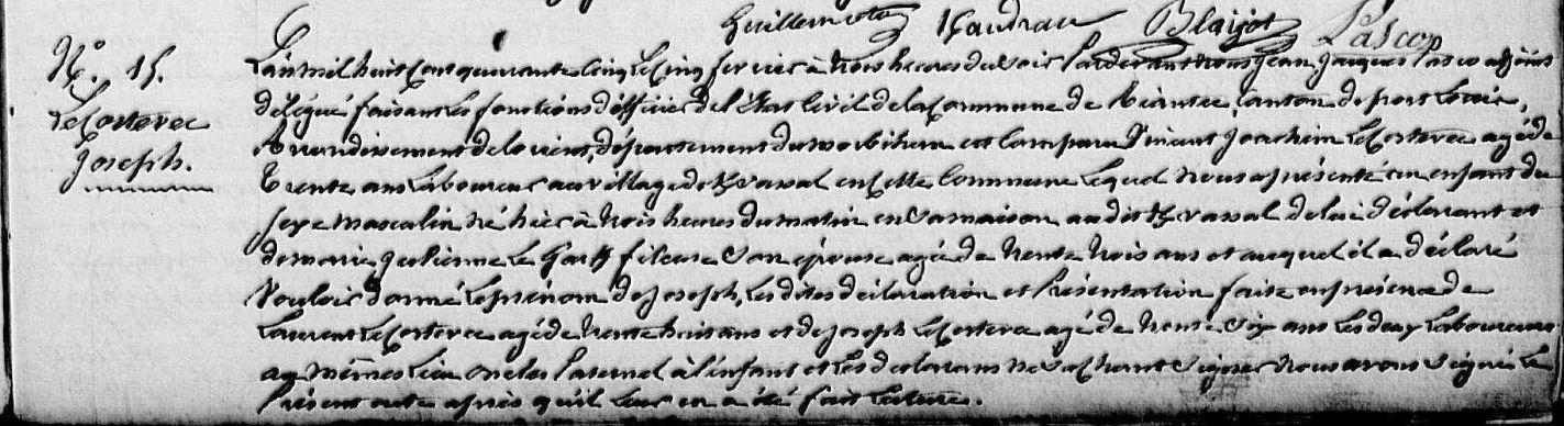 | 1 Note, Naissance : Vérifier si il n'y a pas doublon avec Joseph (frère) né le 31/01/1780, dcd le 04/10/1836. |