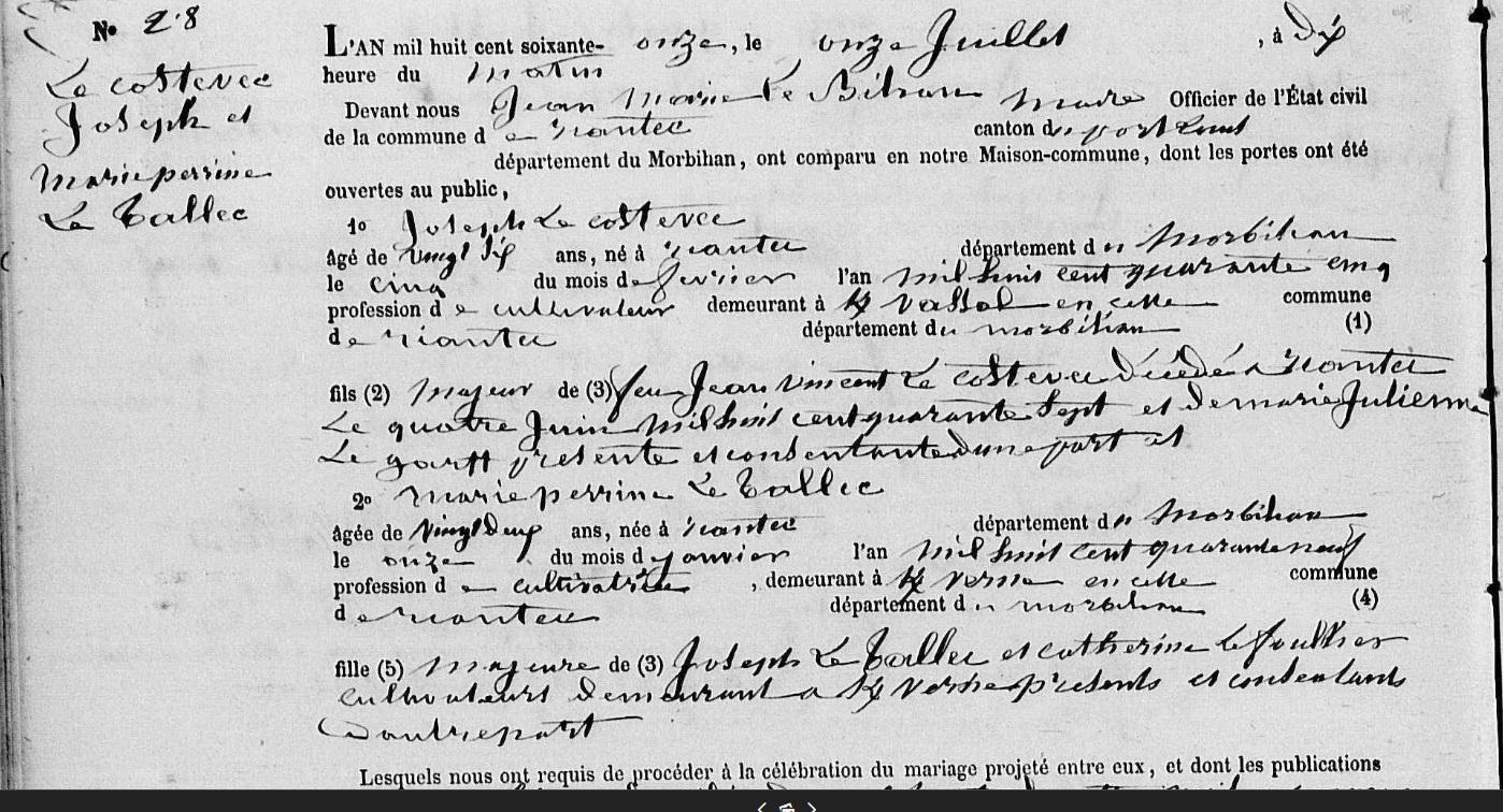 | 3. COSTEVEC (LE) Julien Naissance : Date : 08/11/1849 Lieu : Riantec (56), Nezenel |