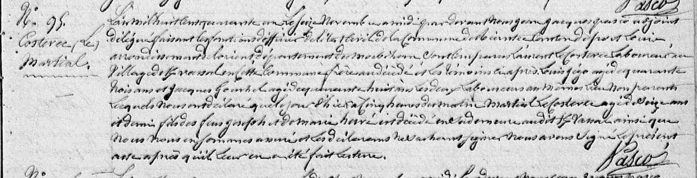| Signature : Non. Père : COSTEVEC (LE) Jean Louis, Cultivateur Naissance : Date : ../../1800 Mère : |
