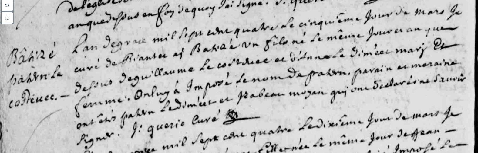 | Baptême COSTEVEC (LE) Patern - 1704 - Riantec |