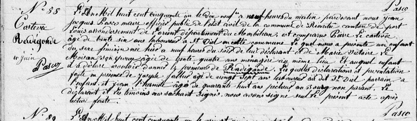 | Naissance COSTEVEC (LE) Radegonde - 1851 - Riantec |