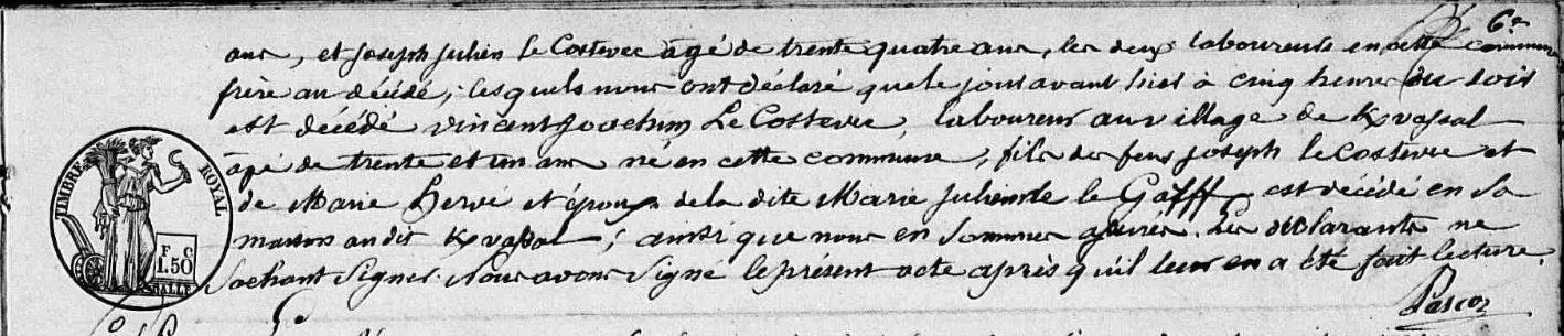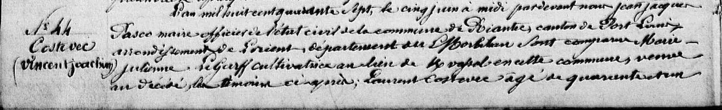 | 4. COSTEVEC (LE) Jérome Naissance : Date : 30/09/1788 Lieu : Riantec (56), Kerner |