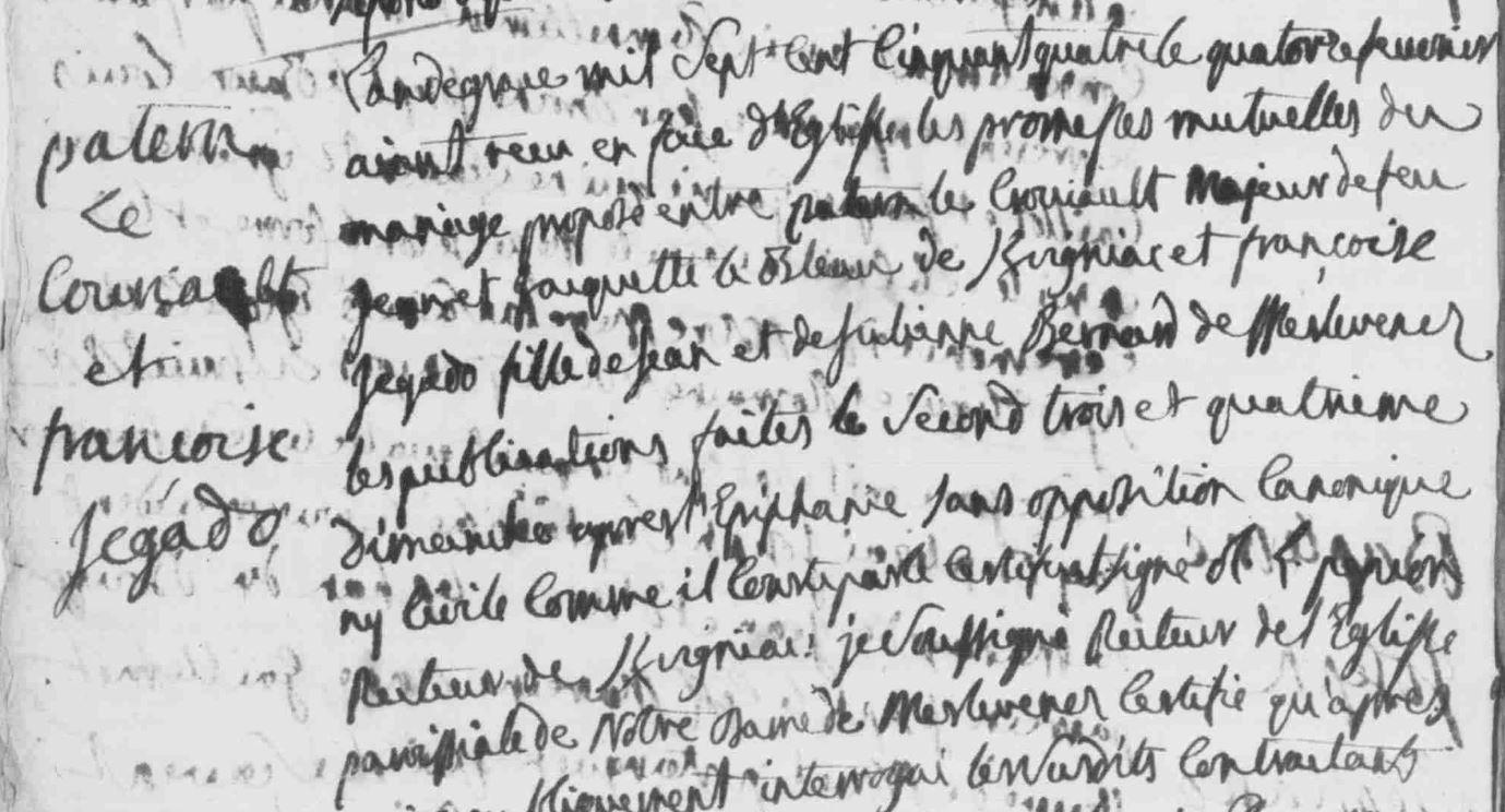 | Mariage COURIAULT (LE) Patern JEGADO Françoise - 1754 - Merlevenez - 1 |