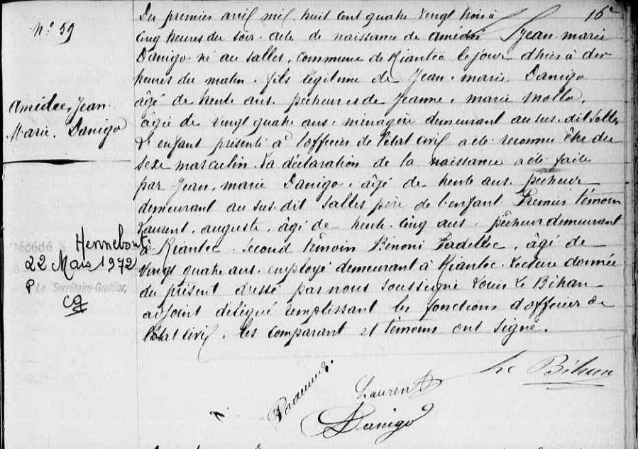 | Naissance DANIGO Amédée Jean Marie - 1883 - Riantec |