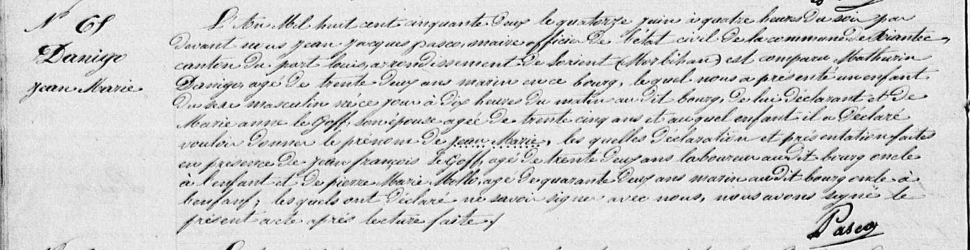 | Naissance DANIGO Jean Marie - 1852 - Riantec |