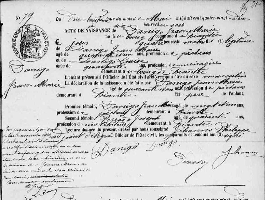 Naissance DANIGO Jeanne Marie - 1890 - Riantec - Jugement sexe enfant |