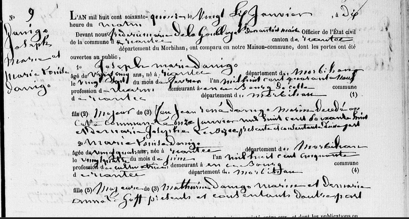 Mariage DANIGO Joseph Marie DANIGO Marie Louise - 1875 - Riantec - 3 |