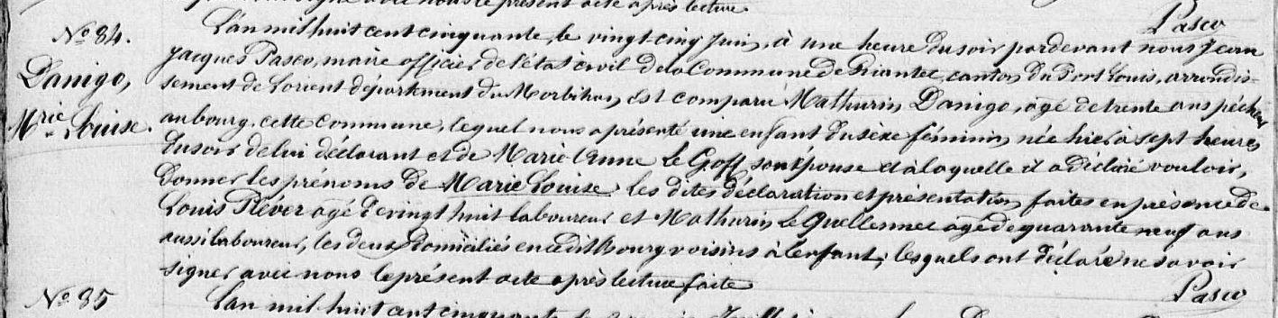 | Naissance DANIGO Marie Louise - 1850 - Riantec |