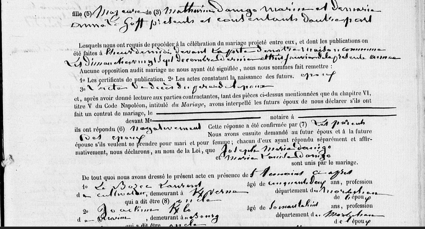 Mariage DANIGO Joseph Marie DANIGO Marie Louise - 1875 - Riantec - 3 |