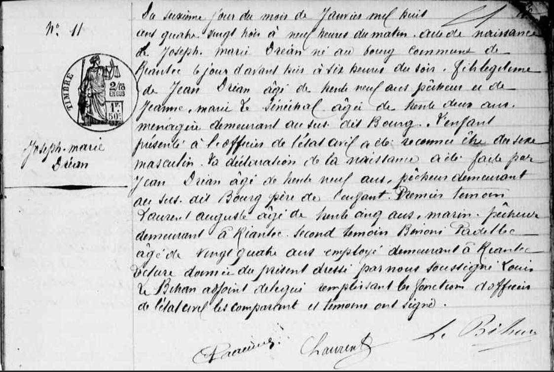 | Naissance DREAN Joseph Marie - 1883 - Riantec |