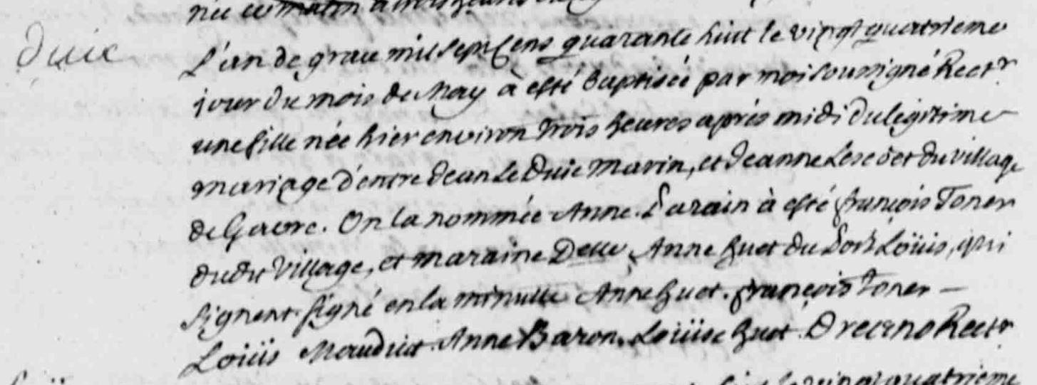 | Baptême DUIC (LE) Anne - 1748 - Riantec |