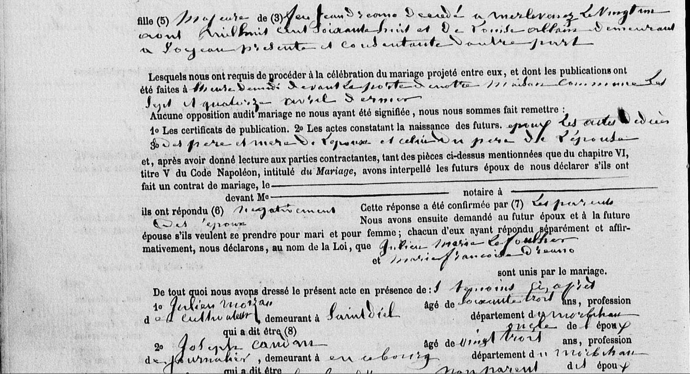 | Mariage FOULHER (LE) Julien Marie GRAS (LE) Marie Mathurine - 1866 - Riantec - 1 |