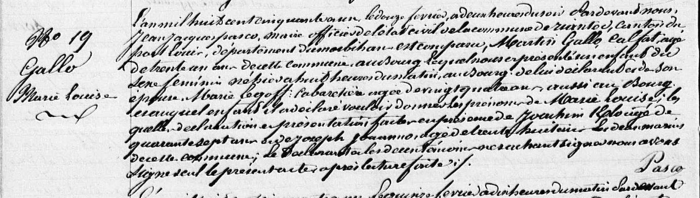 | Naissance GALLO Marie Louise - 1851 - Riantec |