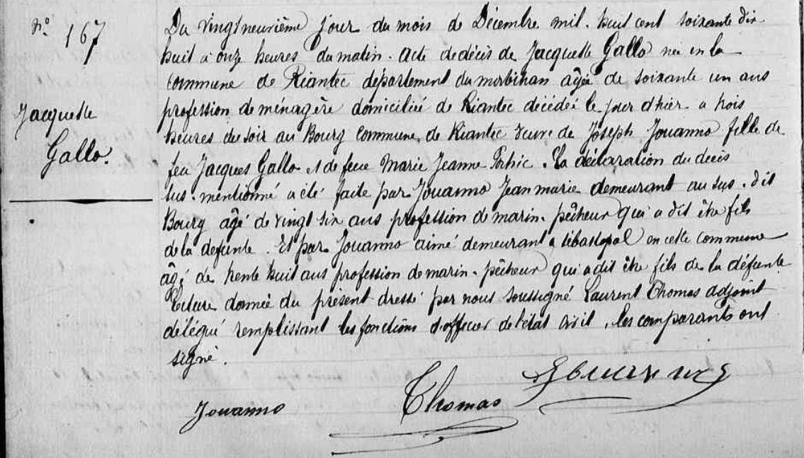 Décès GALLO Marie Jacquette - 1878 - Riantec |