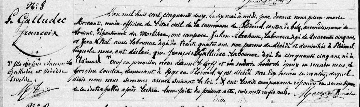 | Décès GALLUDEC (LE) François - 1852 - Ploemel |