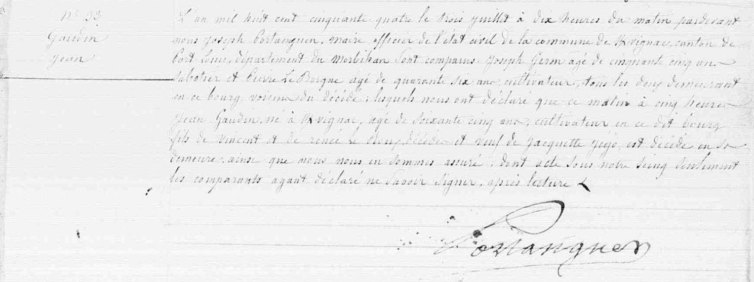 | Décès GAUDIN Jean - 1854 - Kervignac |