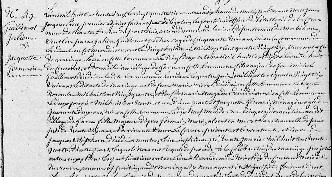Mariage GUILLEMOT Julien GERMAIN Jacquette - 1839 - Riantec - 2 |