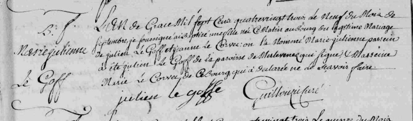 | Naissance GOFF (LE) Marie Julienne - 1783 - Riantec |