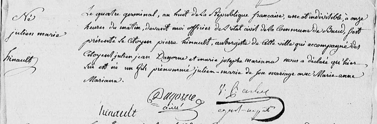 | Naissance HINAULT Julien Marie - 1800 - Baud |