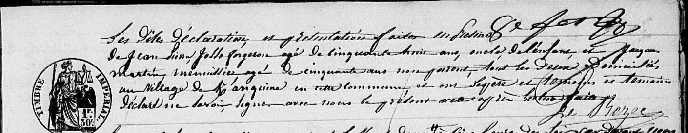 | Il naît ../../1806 . Signature : Non. Père : JOSSO Jacques, Sosa 54, Forgeron Naissance : Date : 24/11/1827 Lieu : Kervignac (56), Saint Sterlin Décès : Date : 14/09/1883 Lieu : Riantec (56) à l'âge de 55 ans. Mère : PASCO Marie Anne, Sosa 55, Ménagère - Cultivatrice - Domestique Naissance : Date : 16/04/1828 Lieu : Riantec (56) Décès : Date : 26/01/1895 Lieu : Riantec (56), Nezenel à l'âge de 66 ans. A sa naissance, ses père et mère étaient âgés de 21 ans et 22 ans. |