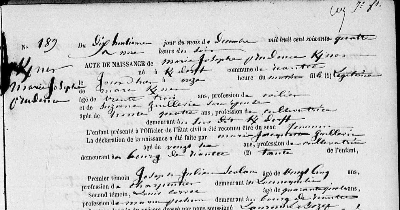 | Naissance KERNER Marie Joseph Prudence - 1864 - Riantec - 1 |