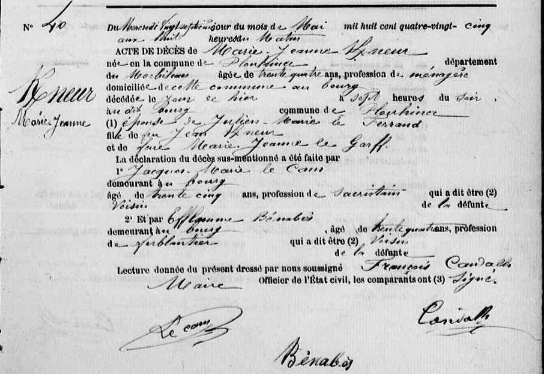 | Décès KERNEUR Marie Jeanne - 1885 - Plouhinec |