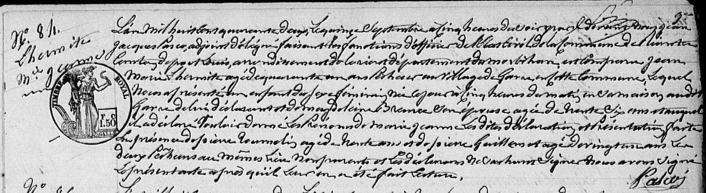 | Enfant(s) de L'HERMITE Germain et de DEOREZ (LE) Marie : - L'HERMITE Marie Jeanne (Naissance : 1738) - L'HERMITE Marie Germaine (Naissance : 1743 Décès : 1743) - L'HERMITE Marie (Naissance : 1747) Union 1768 : MAISTRE (LE) Guillaume |