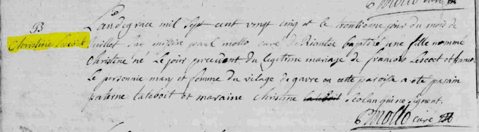 | Baptême LESCOET Christine - 1725 - Riantec |