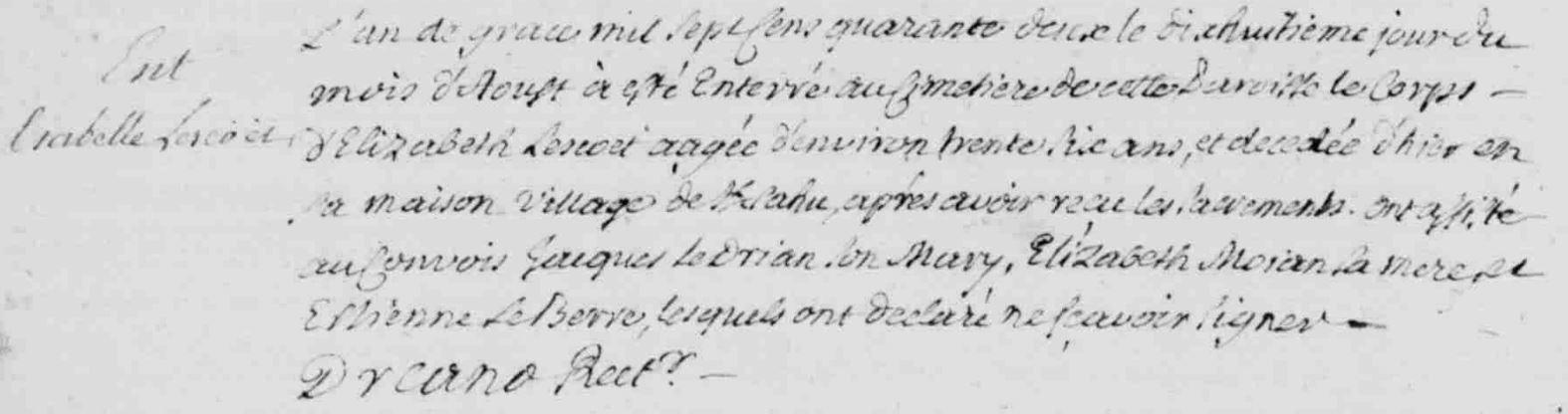 | Sépulture LESCOET Elisabeth - 1742 - Riantec |