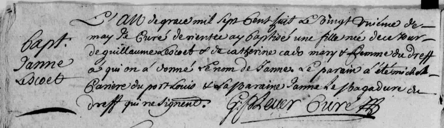 | Baptême LESCOET Jeanne - 1706 - Riantec |