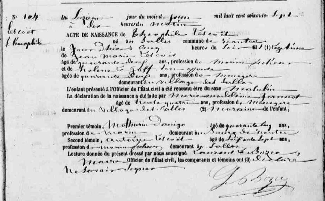 | Naissance LESCOET Théophile - 1867 - Riantec |