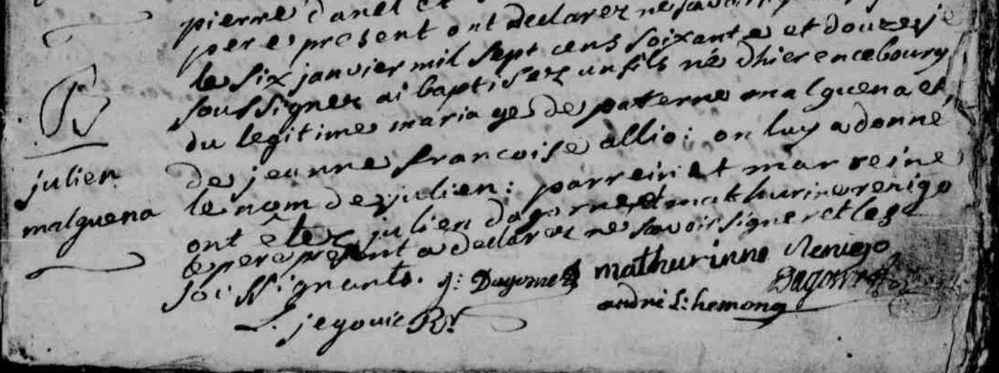| Baptême MALGUENAC Julienne - 1712 - Baud |