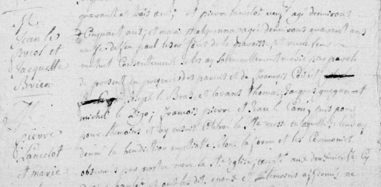| Mariage 2 : Date : 02/02/1731 Lieu : Camors (56) LANCELOT Pierre, Il naît ca ../../1681 . |