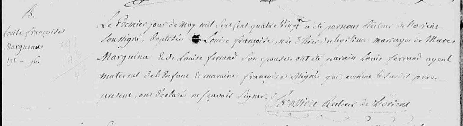 | Baptême MARGUENA Louise Françoise - 1780 - Lorient |