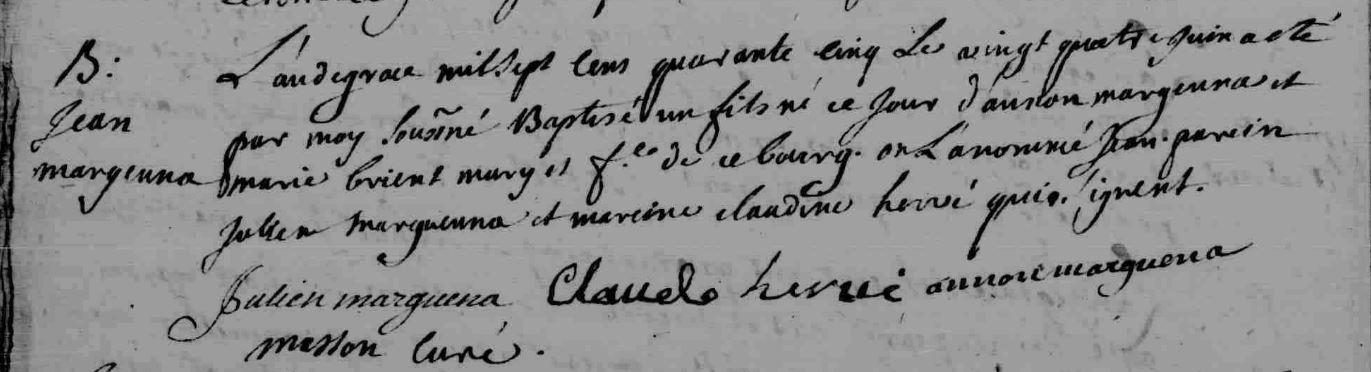 | Baptême MALGUENAC (MARGUENNA) Jean - 1745 - Baud |