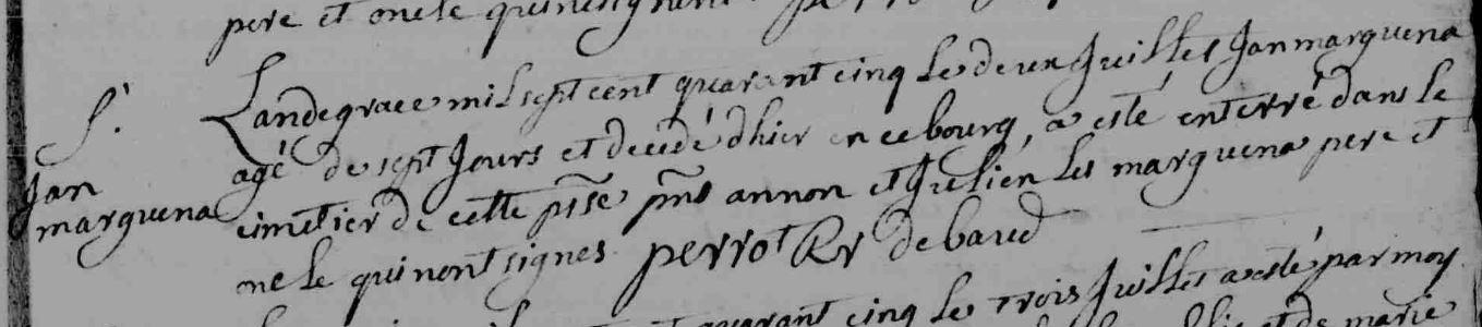 | Naissance MARGUENNAC Guillaume - 1641 - Elven |