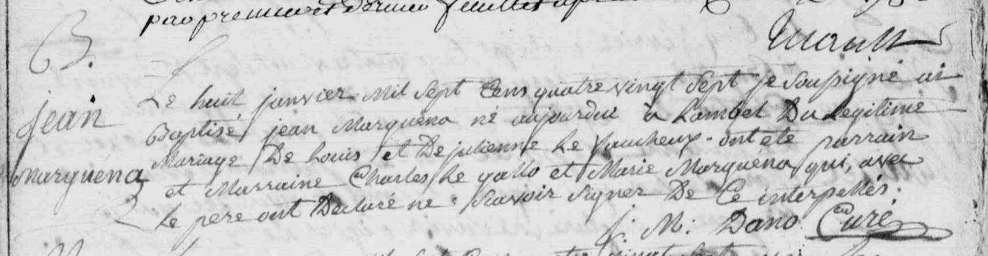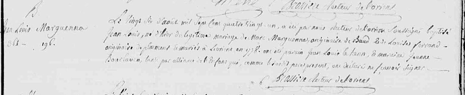| Baptême MARGUENNA Jean Louis - 1781 - Lorient |